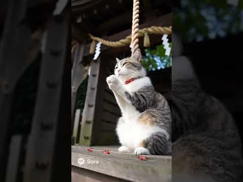 神社でお願い事する猫🐱 …